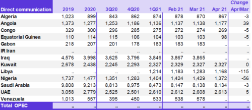 OPEC. Объемы нефтедобычи по странам от 11 мая 2021