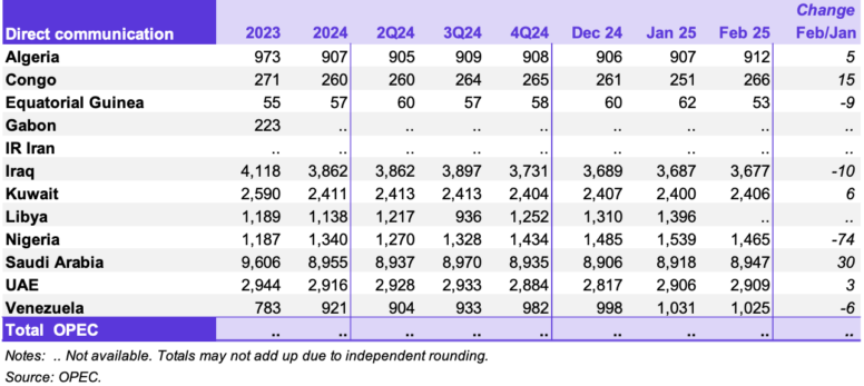 OPEC. Объемы нефтедобычи по странам от 12 марта 2025