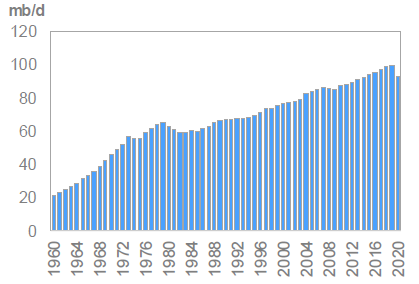 Развитие мировой экономики и рост численности населения привели к тому, что спрос на нефть по сравнению с 1960-ыми годами возрос на 75 млн. баррелей в день.