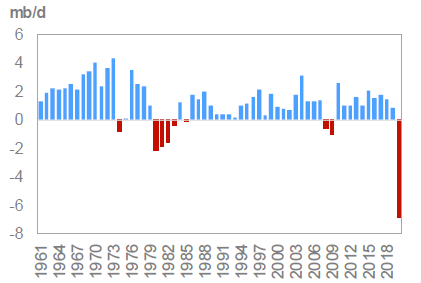 Спрос также сокращался в начале 1980-ых на протяжении практически четырех лет подряд. В общей сложности спрос тогда сократился на 6 млн. баррелей в день.