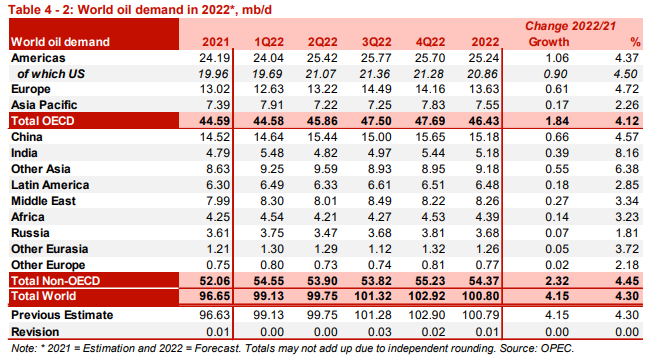 Таблица 4-2. Мировой спрос на нефть в 2022, млн б/д (Прогноз)