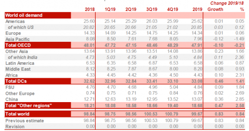 Прогноз по спросу на нефть был пересмотрен в сторону снижения во всех без исключения регионах.
