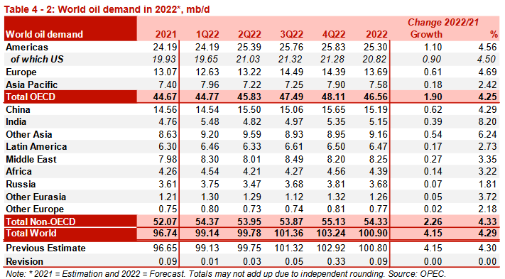 Таблица 4-2. Мировой спрос на нефть в 2022, млн б/д