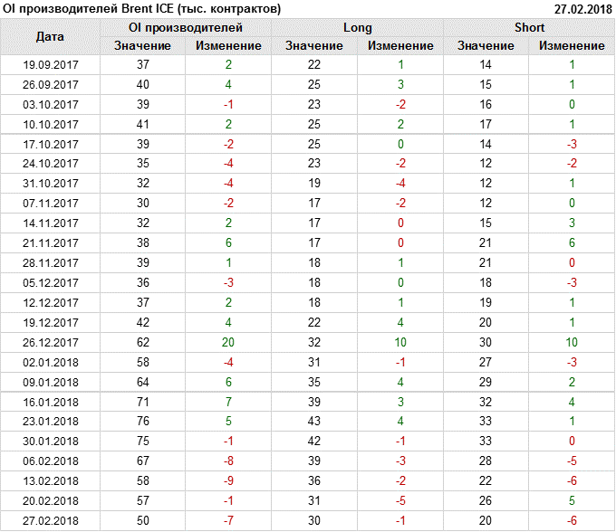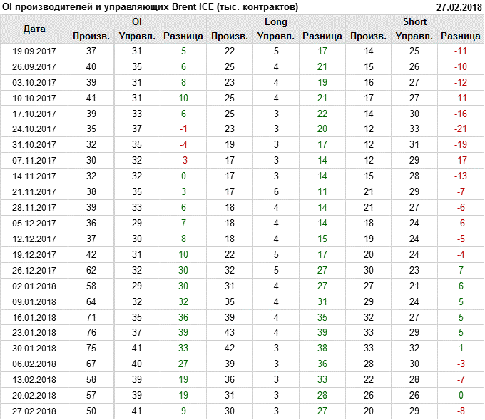 Отчет по открытому интересу. Brent. Биржа ICE на 03.03.2018.