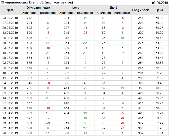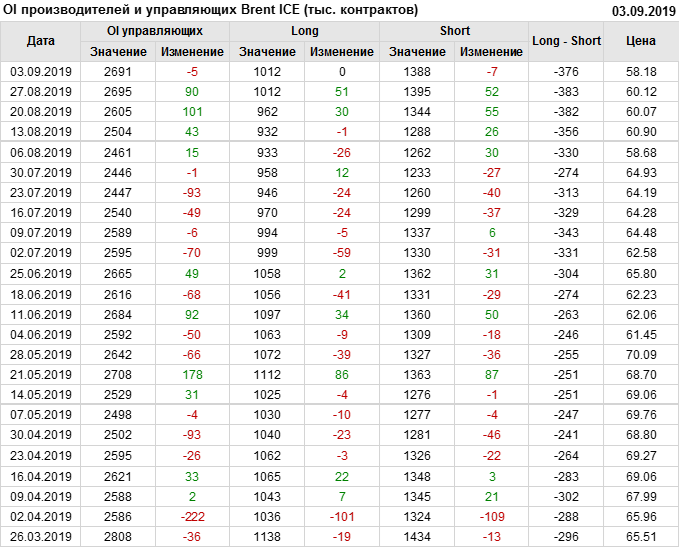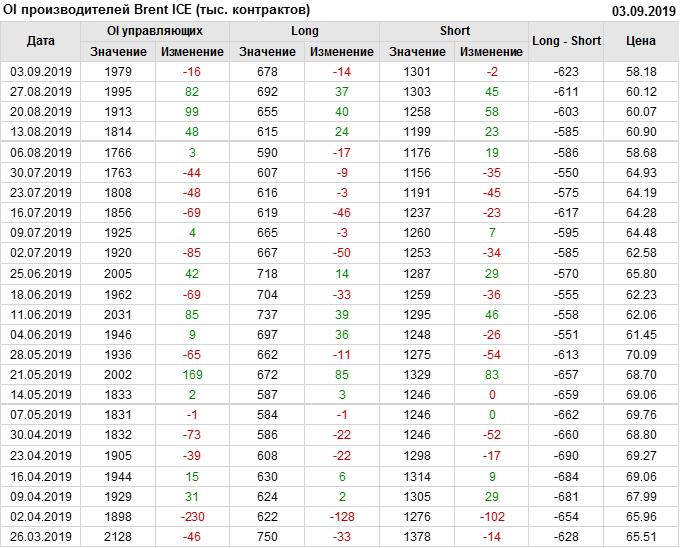 Отчет по открытому интересу. Brent. Биржа ICE на 07.09.2019