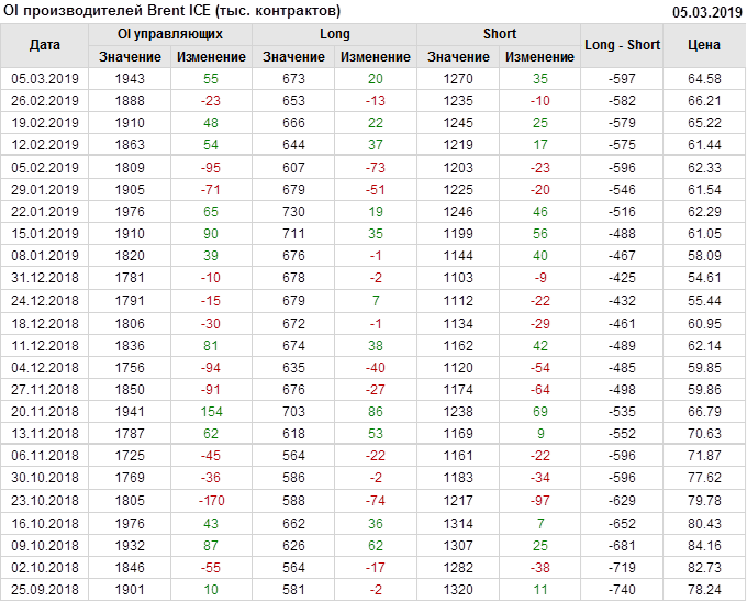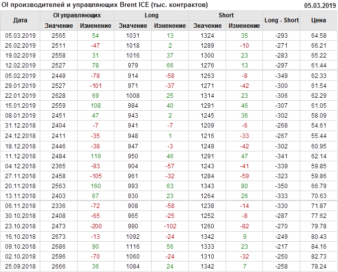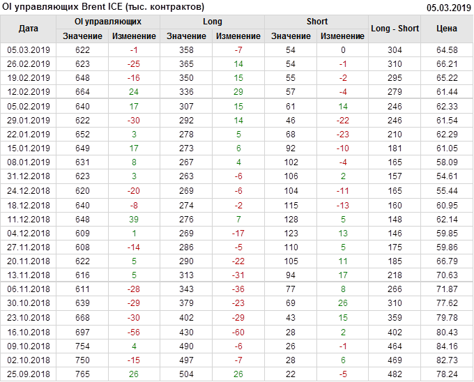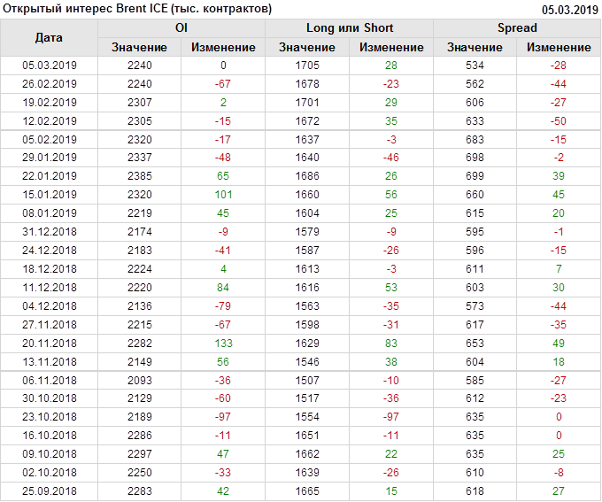 Отчет по открытому интересу. Brent. Биржа ICE на 09.03.2019