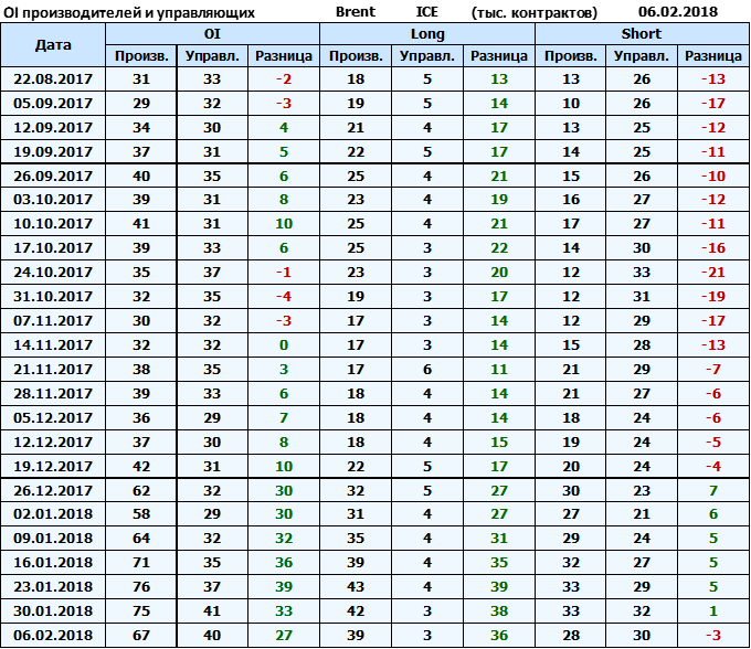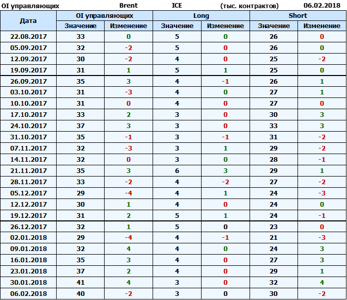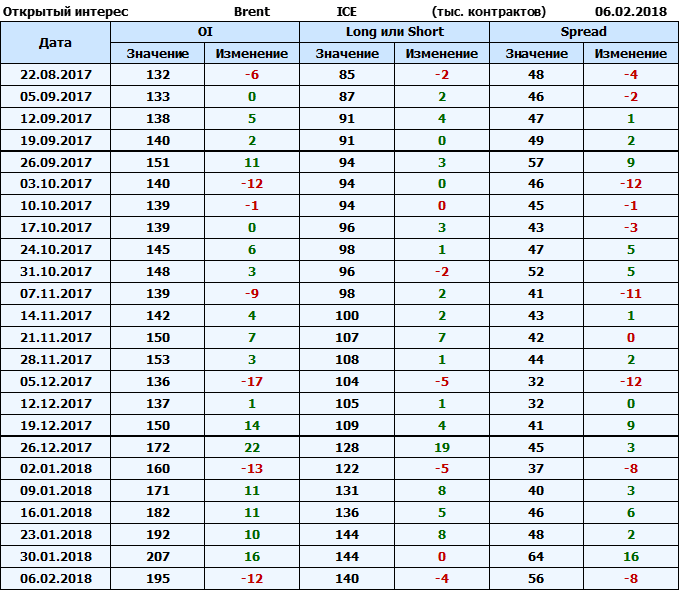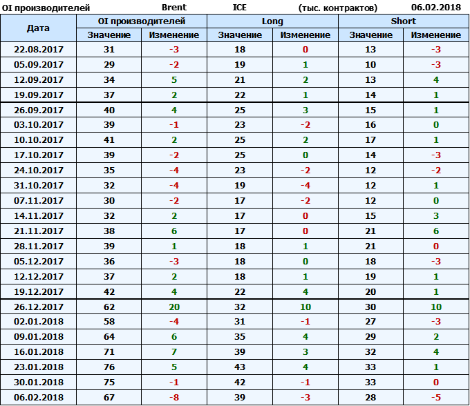 Отчет по открытому интересу. Brent. Биржа ICE на 10.02.2018.