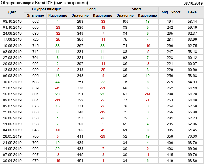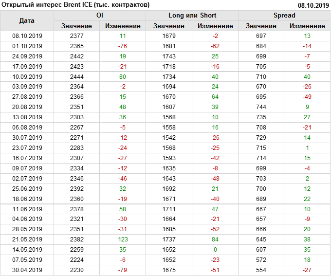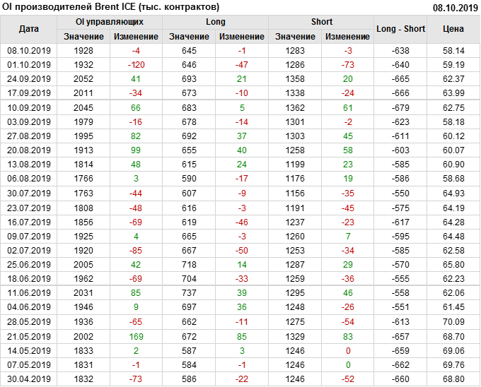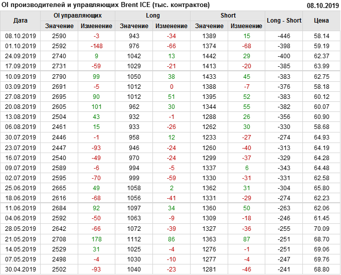 Отчет по открытому интересу. Brent. Биржа ICE на 12.10.2019