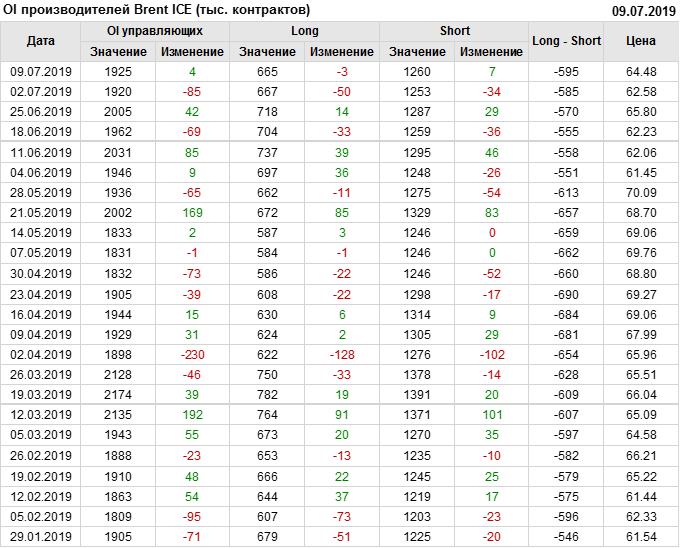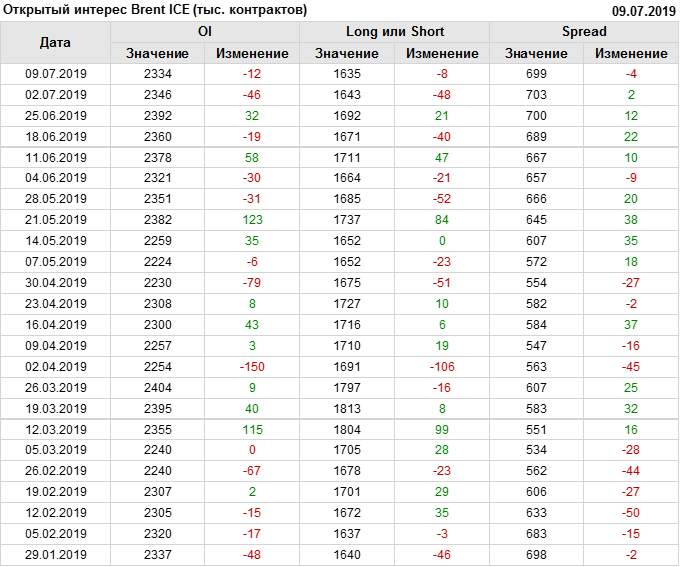 Отчет по открытому интересу. Brent. Биржа ICE на 13.07.2019
