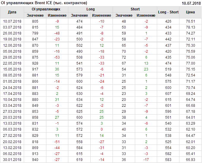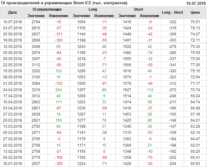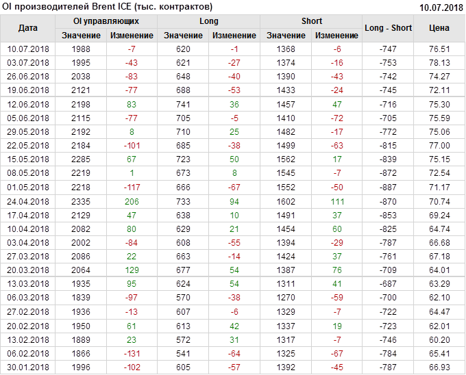 Отчет по открытому интересу. Brent. Биржа ICE на 14.07.2018