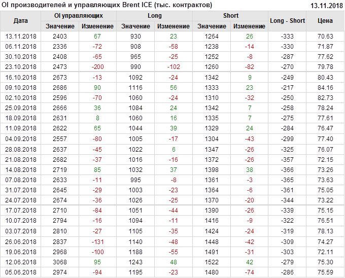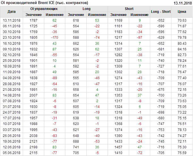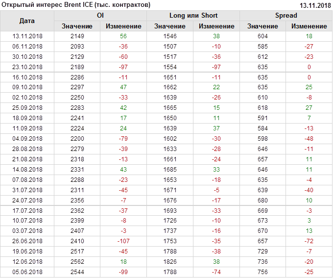 Отчет по открытому интересу. Brent. Биржа ICE на 17.11.2018