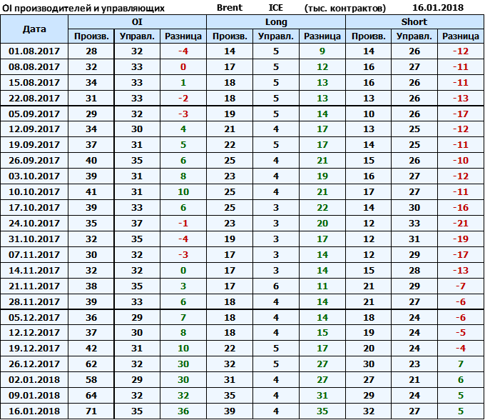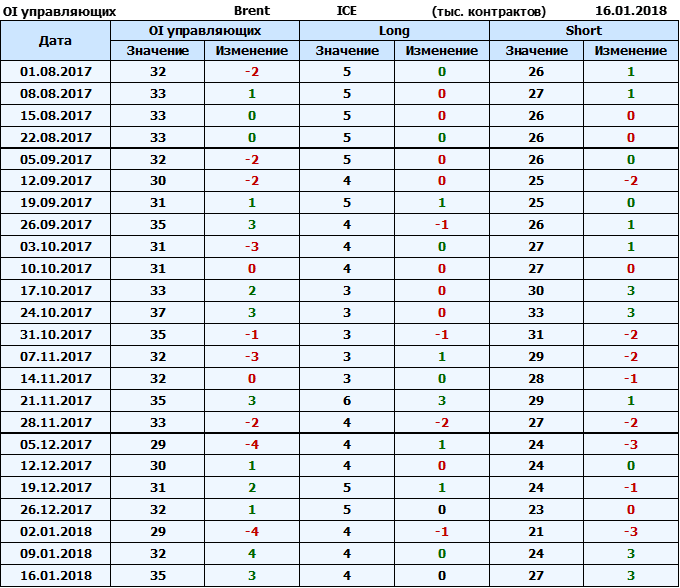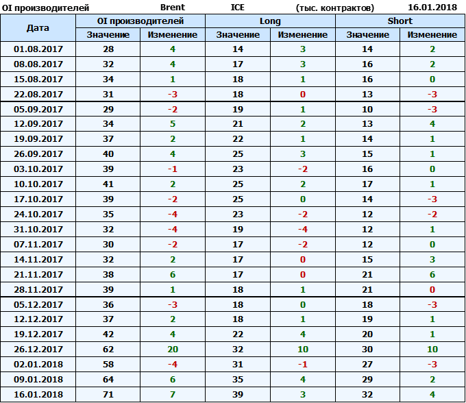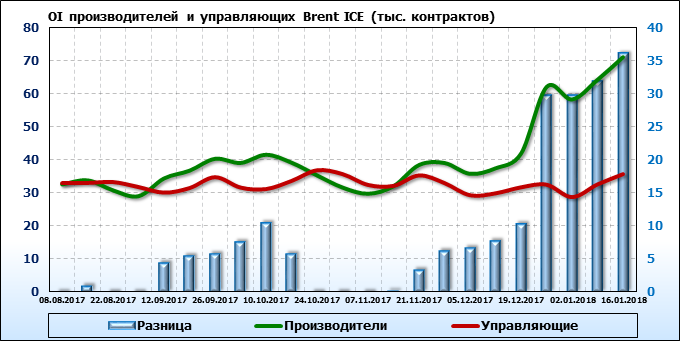 Отчет по открытому интересу. Brent. Биржа ICE на 20.01.2018.