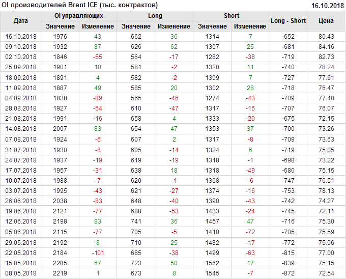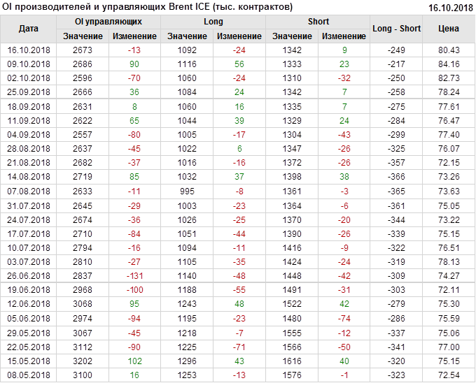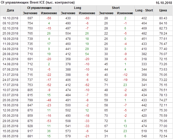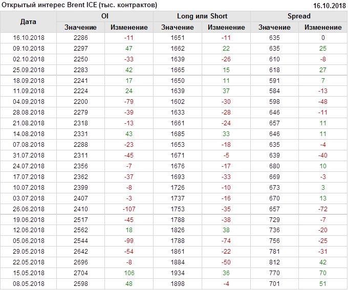 Отчет по открытому интересу. Brent. Биржа ICE на 20.10.2018