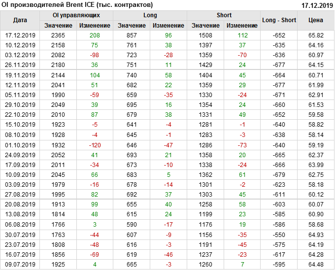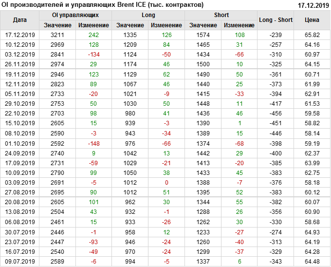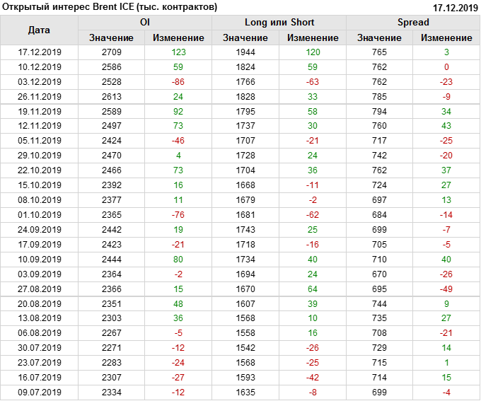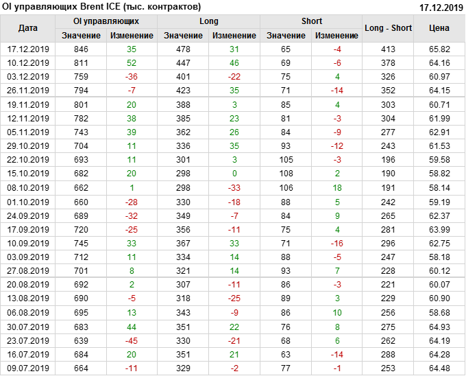 Отчет по открытому интересу. Brent. Биржа ICE на 21.12.2019