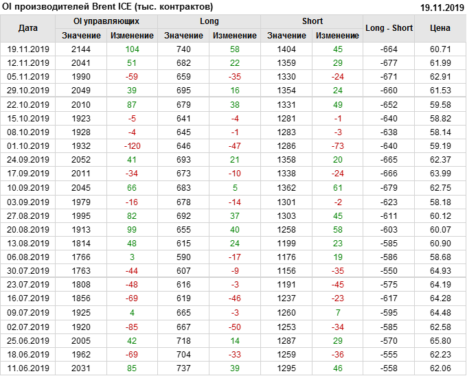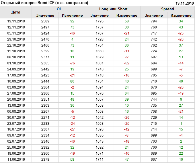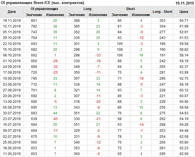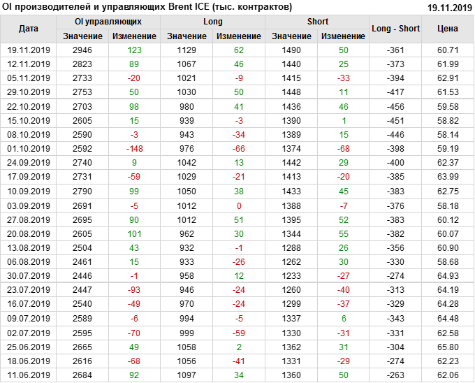 Отчет по открытому интересу. Brent. Биржа ICE на 23.11.2019
