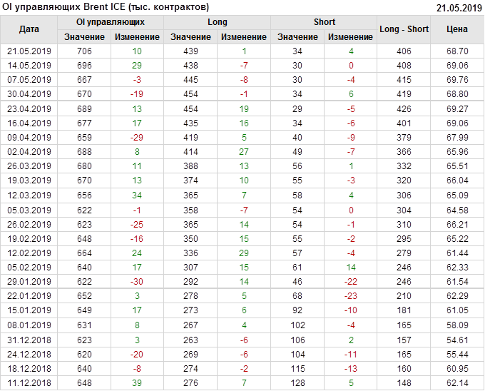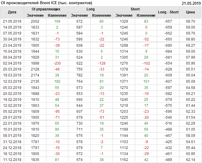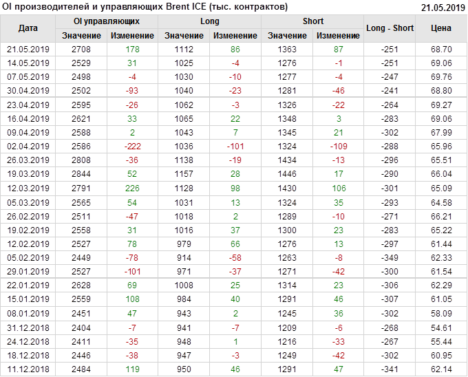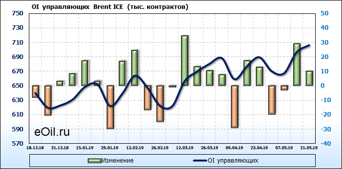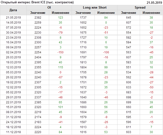 Отчет по открытому интересу. Brent. Биржа ICE на 25.05.2019