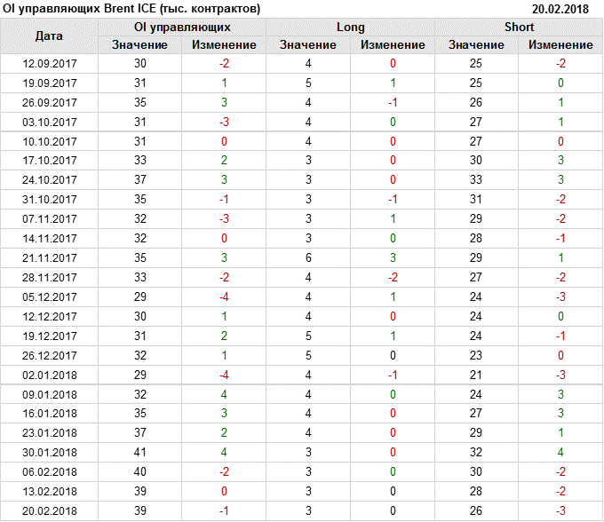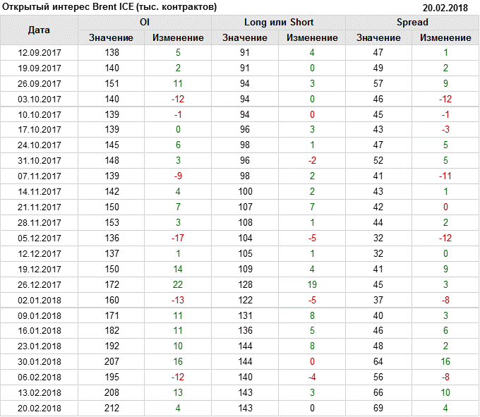 Отчет по открытому интересу. Brent. Биржа ICE на 26.02.2018.