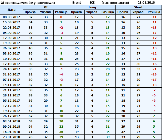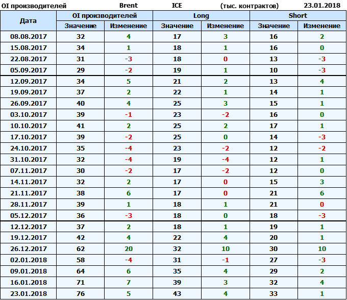 Отчет по открытому интересу. Brent. Биржа ICE на 27.01.2018.