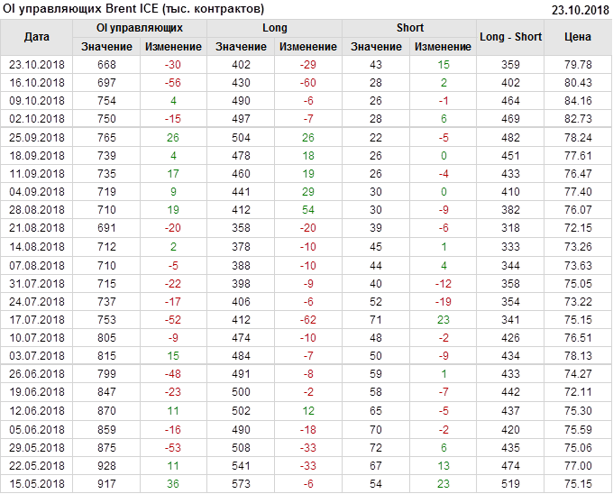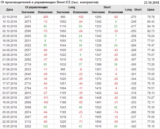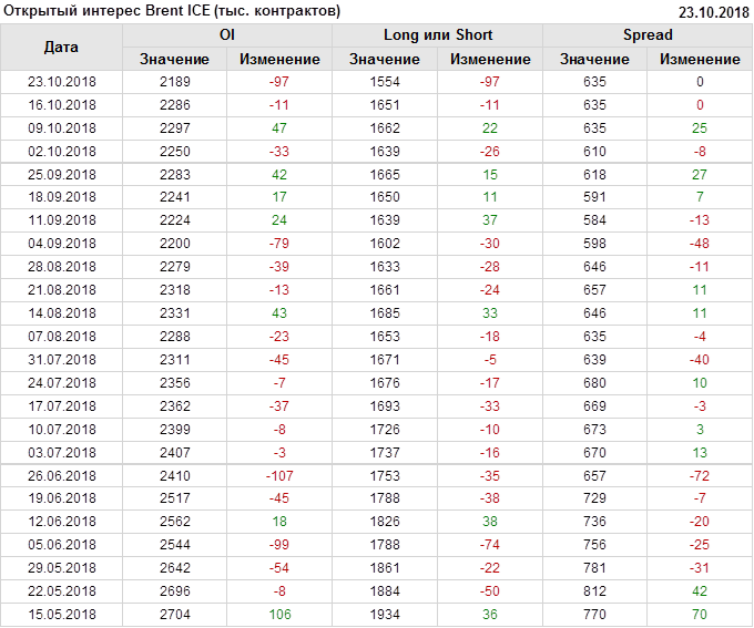 Отчет по открытому интересу. Brent. Биржа ICE на 27.10.2018