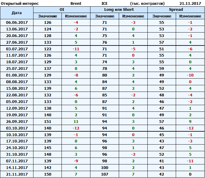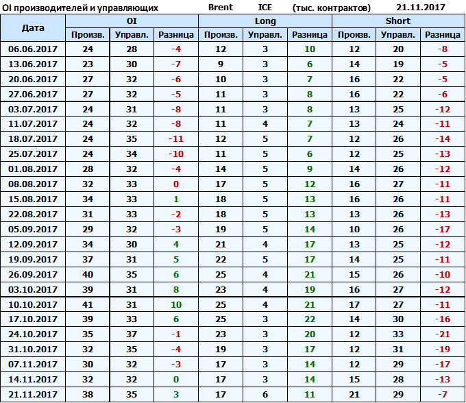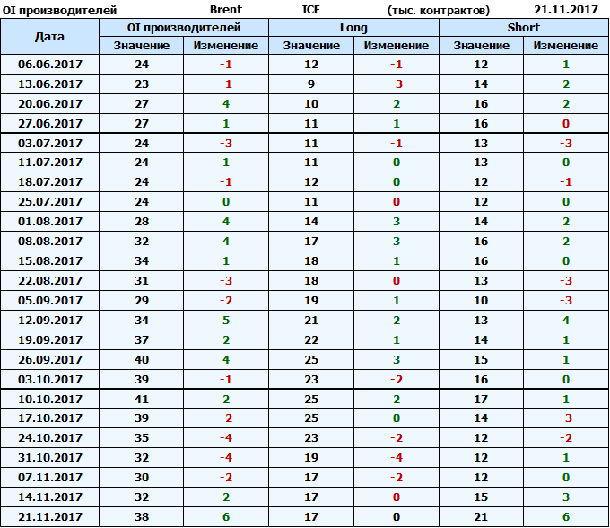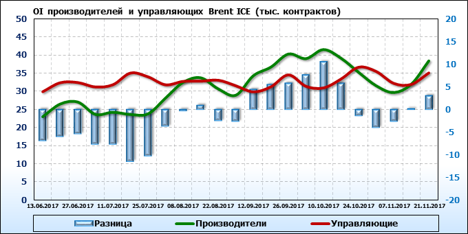 Отчет по открытому интересу. Brent. Биржа ICE на 27.11.2017.