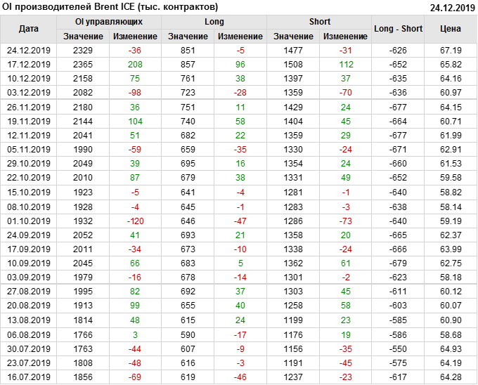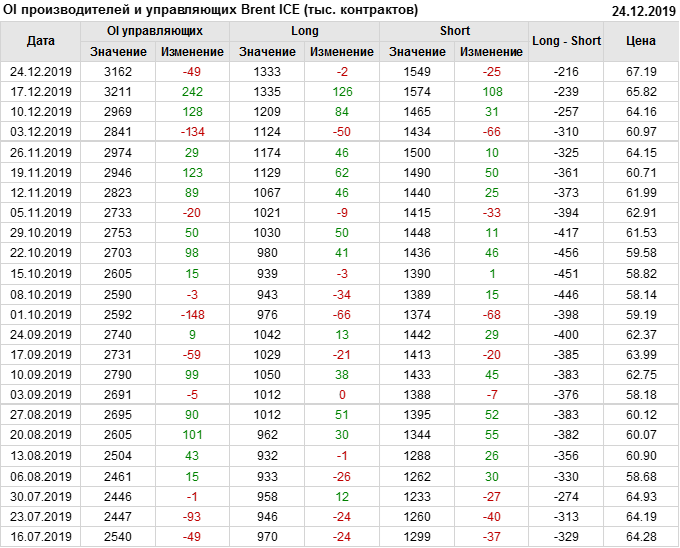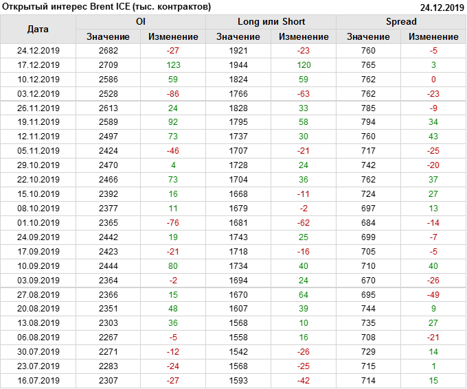 Отчет по открытому интересу. Brent. Биржа ICE на 28.12.2019