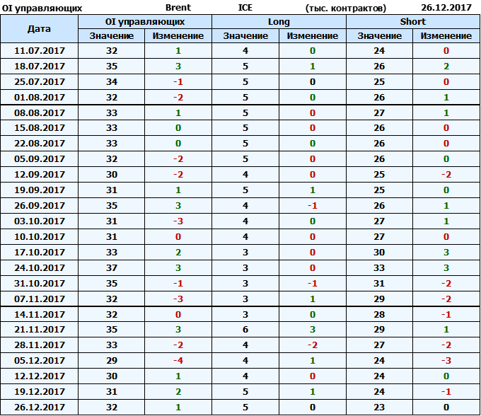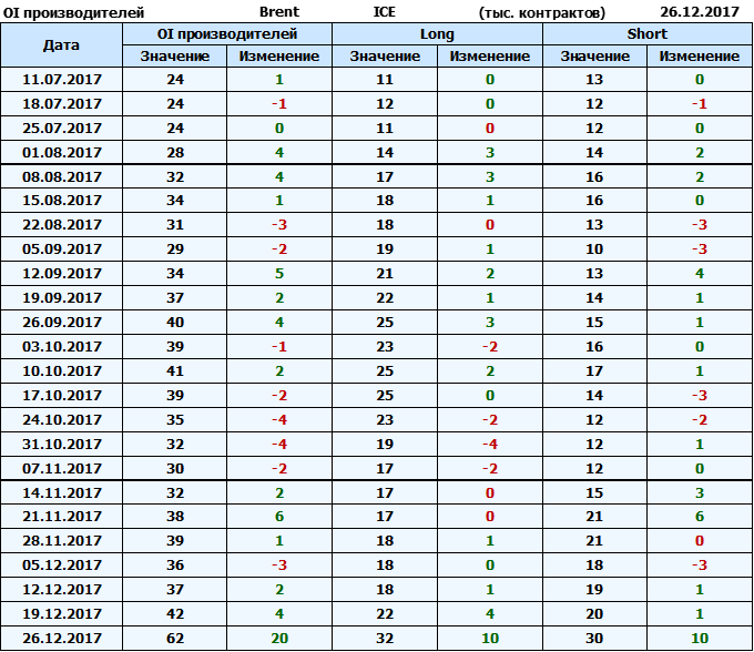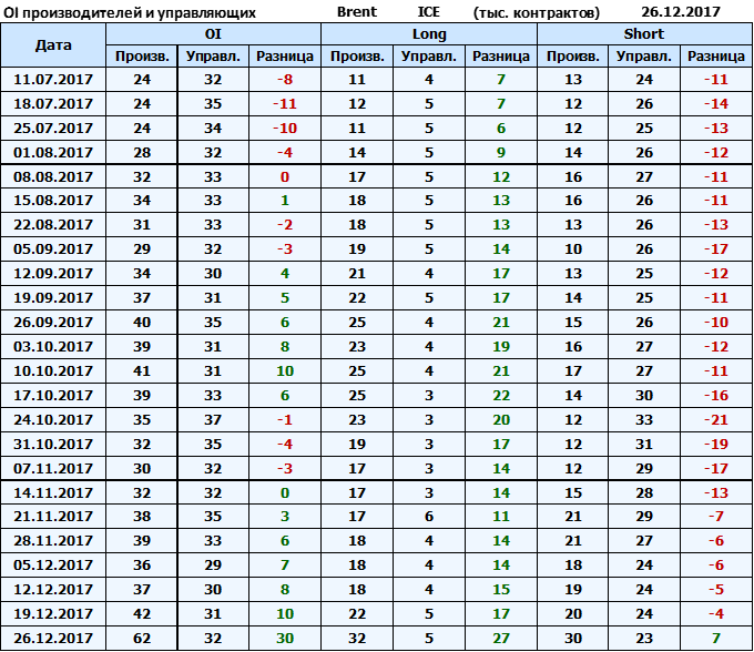 Отчет по открытому интересу. Brent. Биржа ICE на 30.12.2017.
