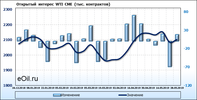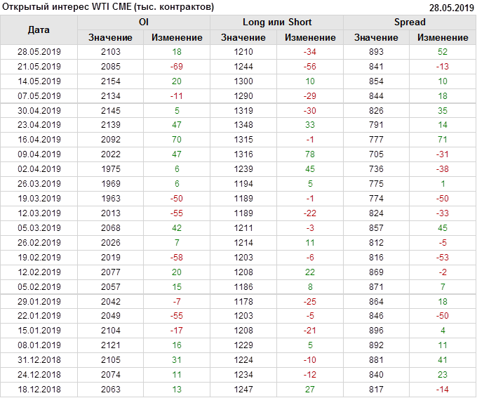 Отчет по открытому интересу. WTI. Биржа CME Group на 01.06.2019