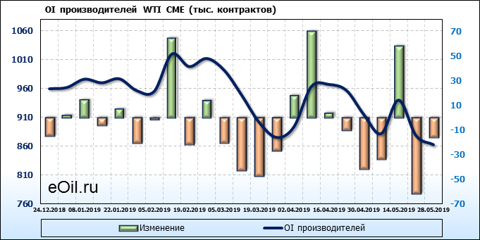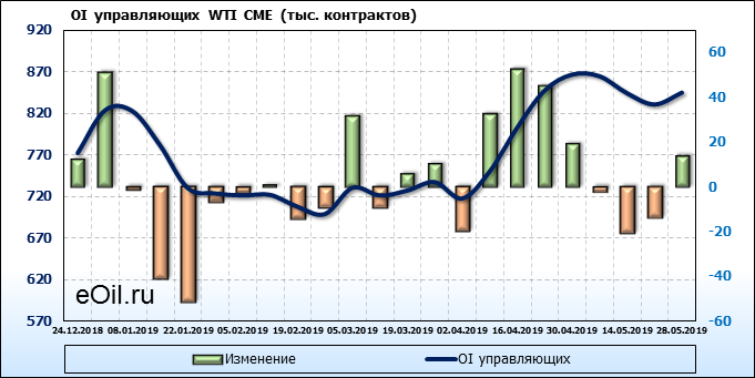 Отчет по открытому интересу. WTI. Биржа CME Group на 01.06.2019