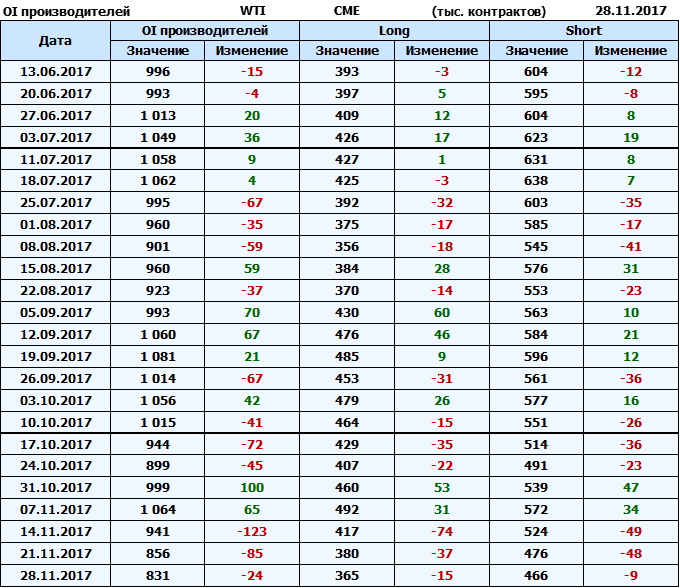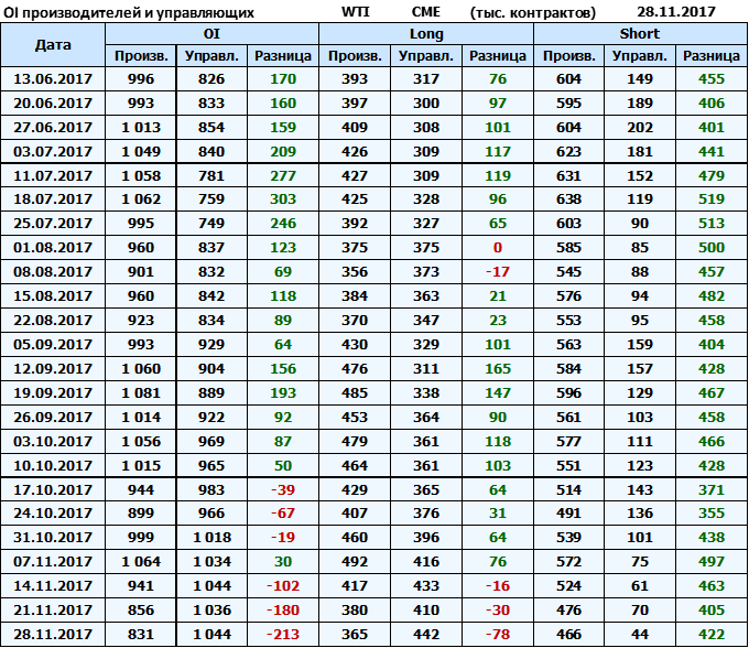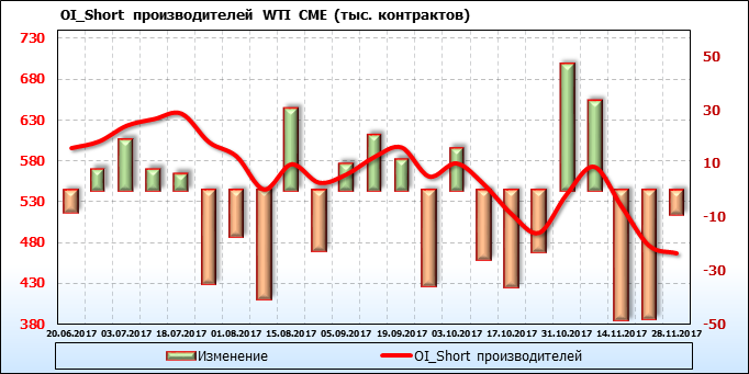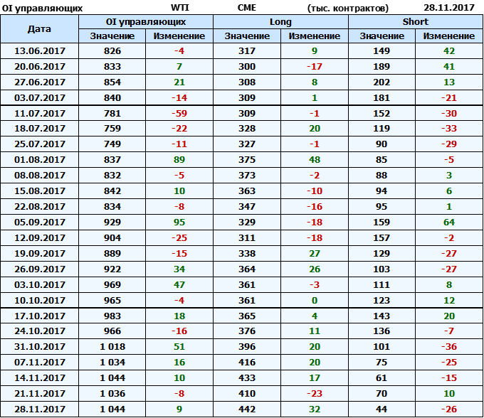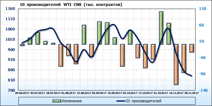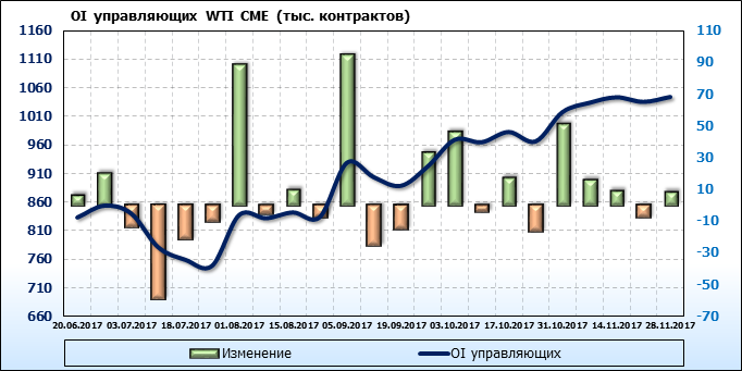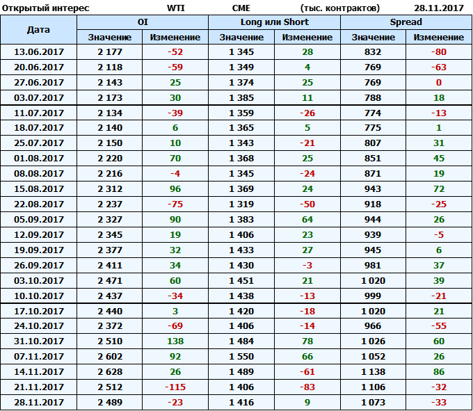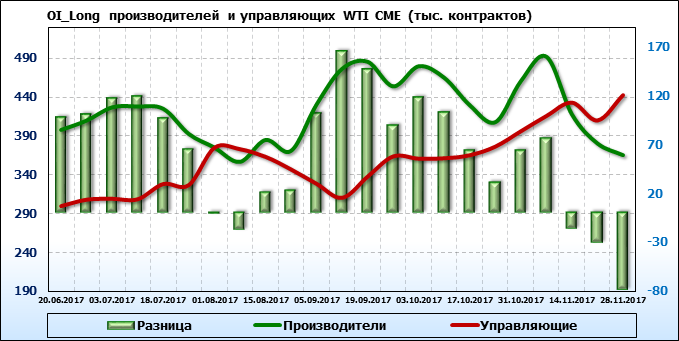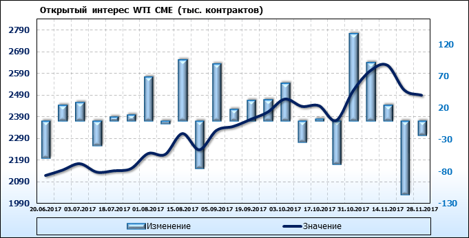 Отчет по открытому интересу. WTI. Биржа CME Group на 02.12.2017.