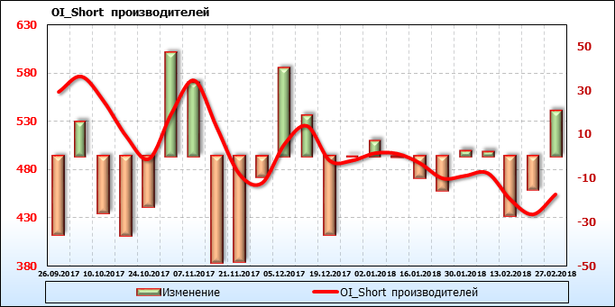 Открытый интерес производителей вырос на 25 тысяч контрактов. Объем контрактов, направленных как правило на хеджирование, составляет 815 593 штуки. Деньги производителей в течение прошлой недели приходили на рынок поддерживая тенденцию.