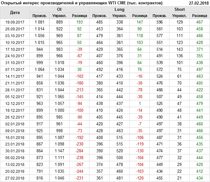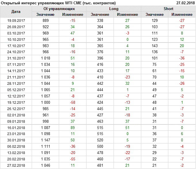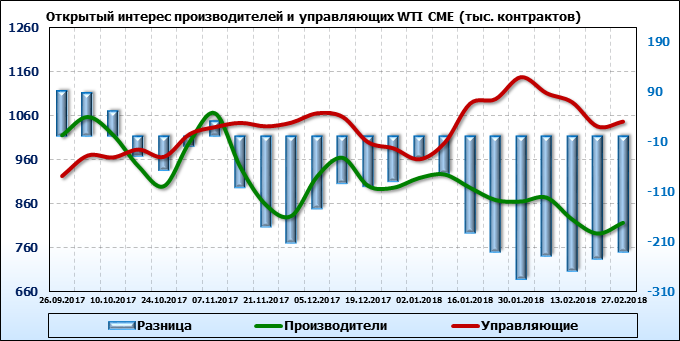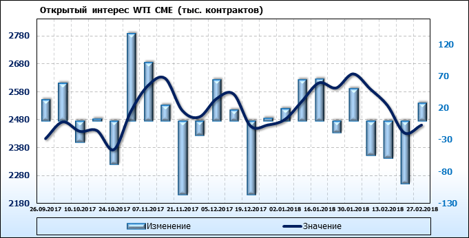 Отчет по открытому интересу. WTI. Биржа CME Group на 03.03.2018.