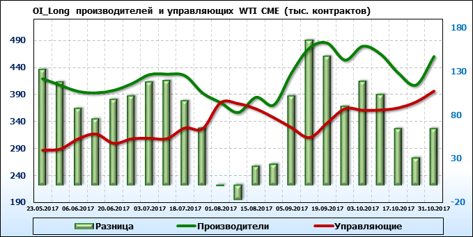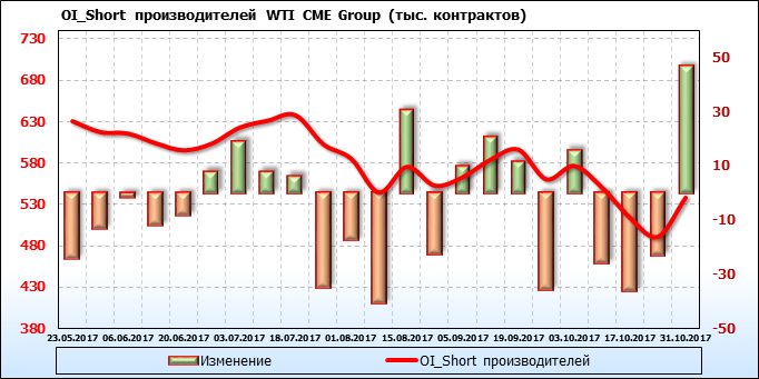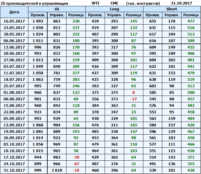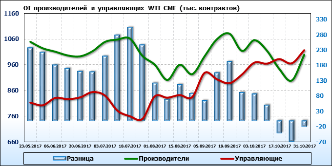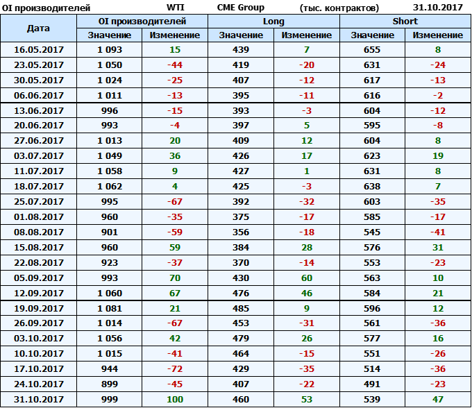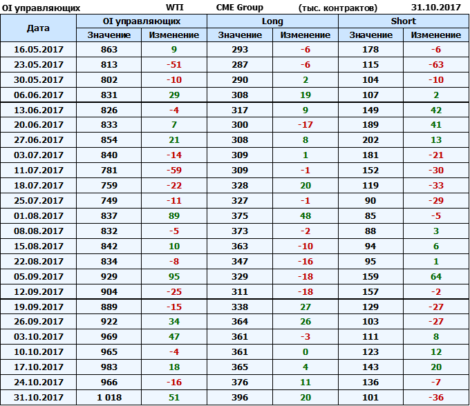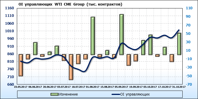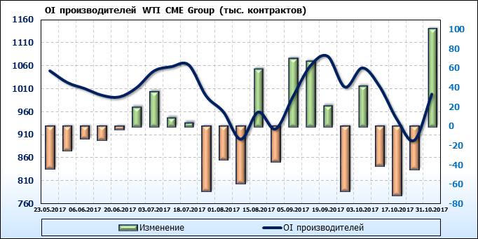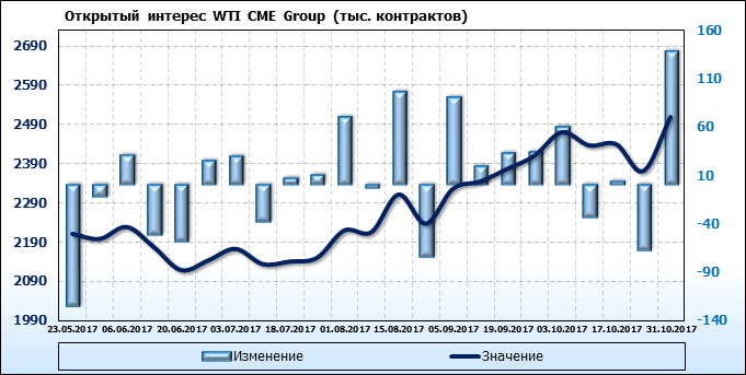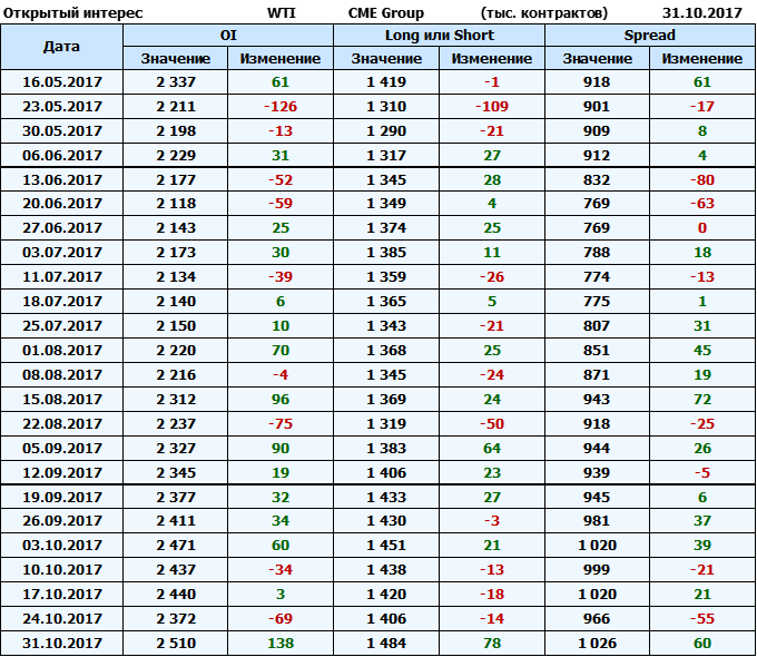 Отчет по открытому интересу. WTI. Биржа CME Group на 03.11.2017.
