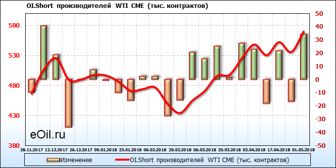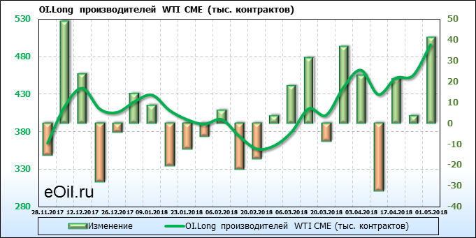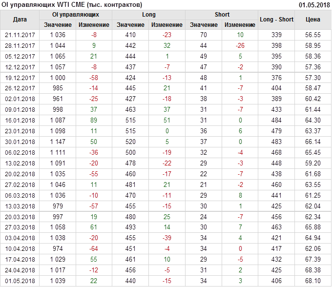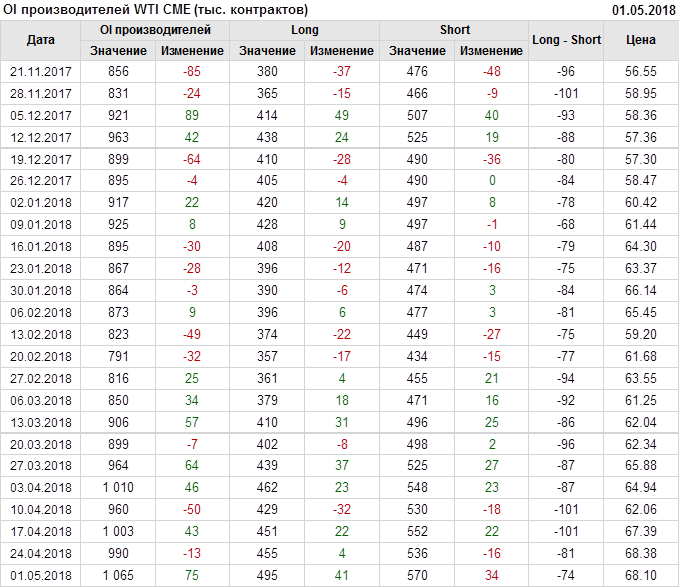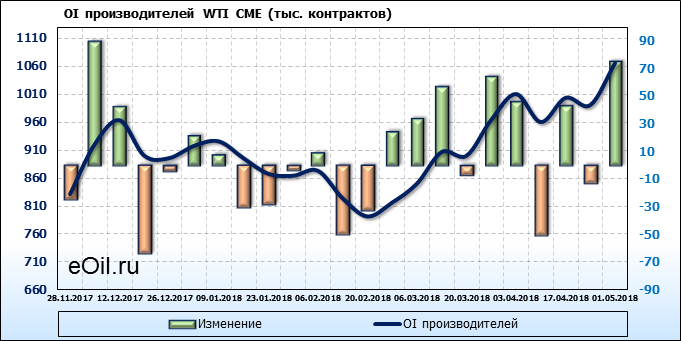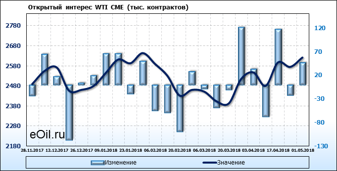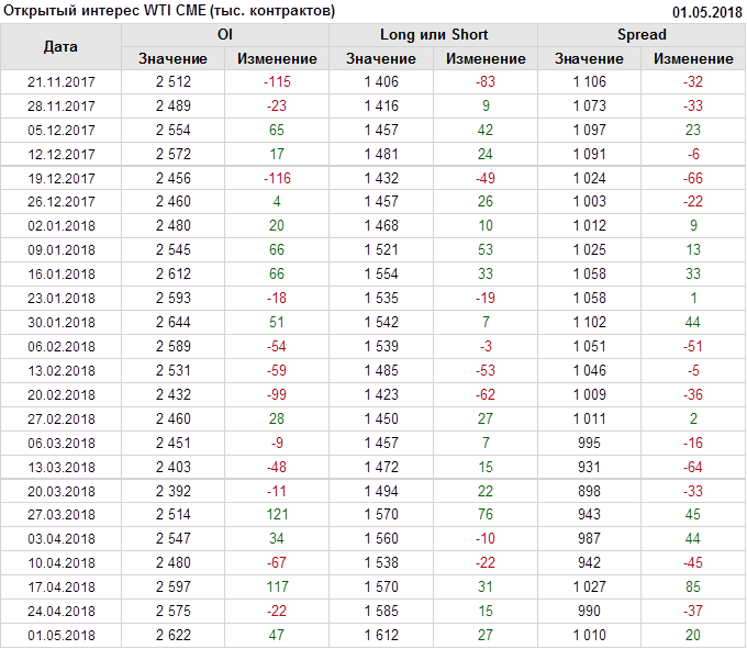 Отчет по открытому интересу. WTI. Биржа CME Group на 05.05.2018