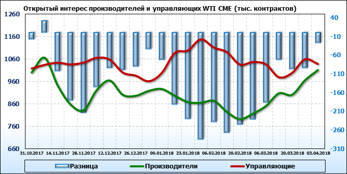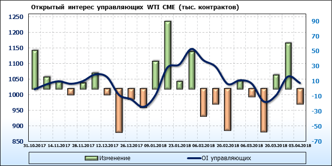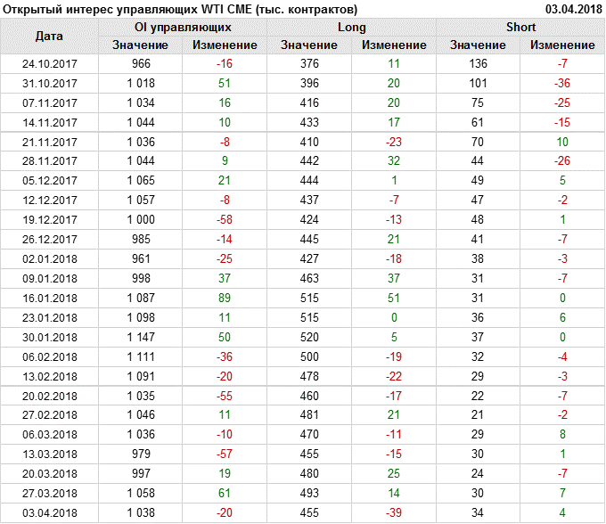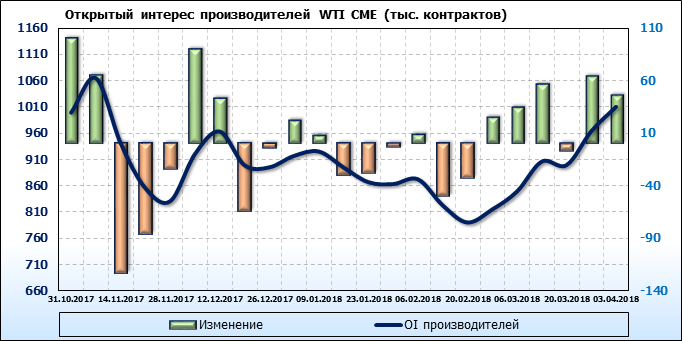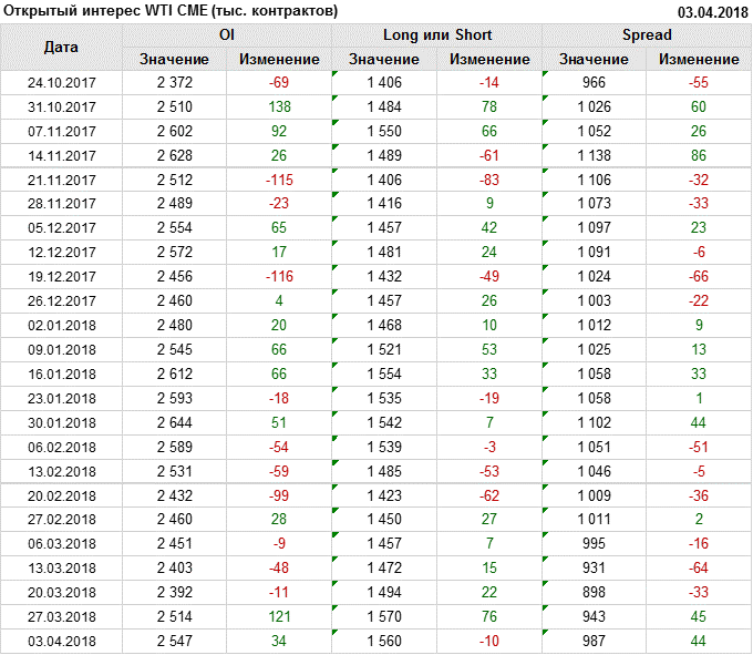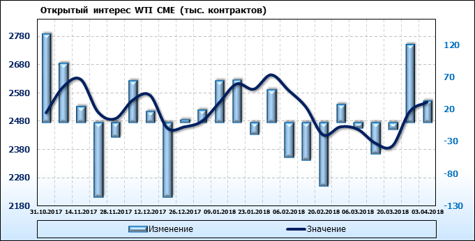 Отчет по открытому интересу. WTI. Биржа CME Group на 06.04.2018.