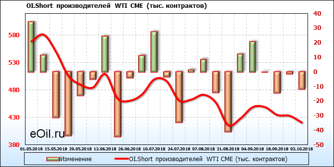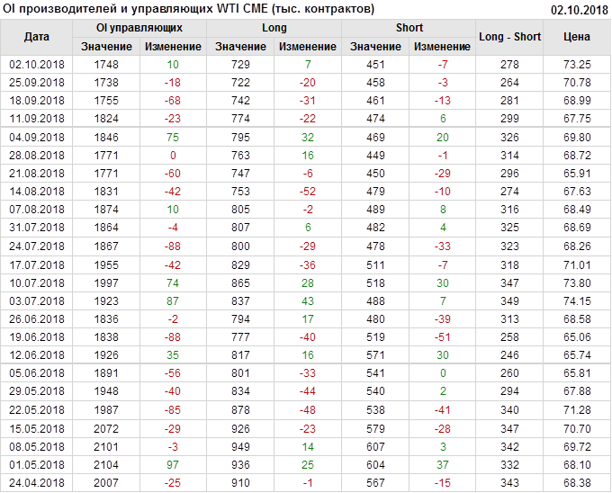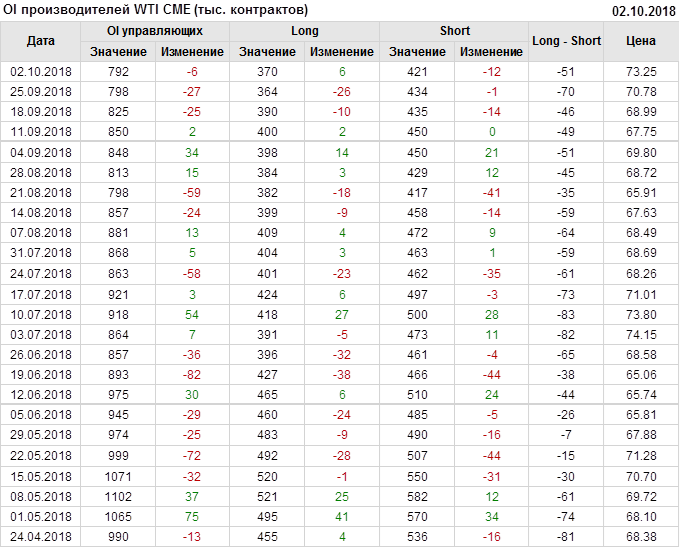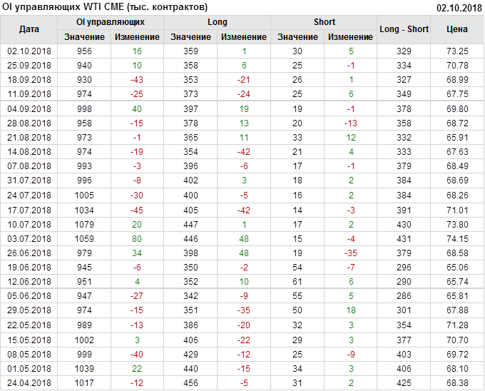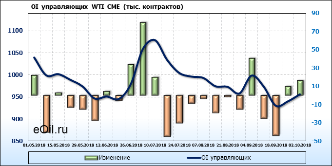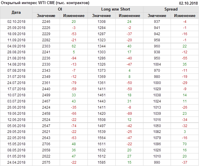 Отчет по открытому интересу. WTI. Биржа CME Group на 06.10.2018