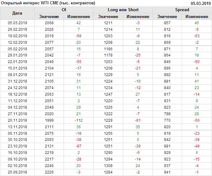 Отчет по открытому интересу. WTI. Биржа CME Group на 09.03.2019