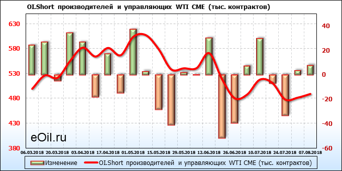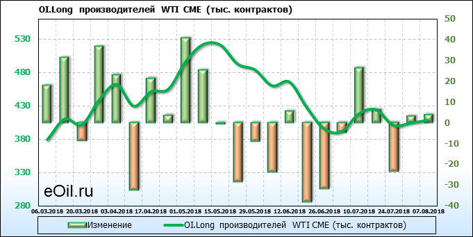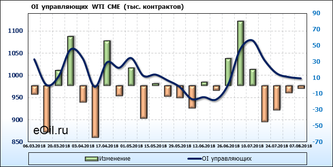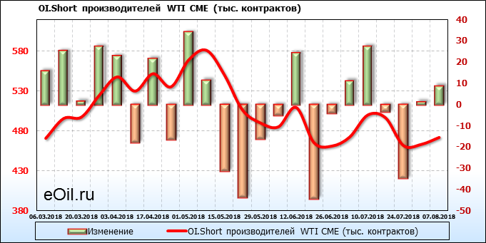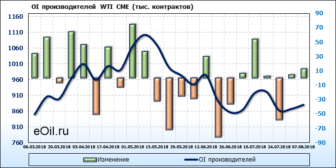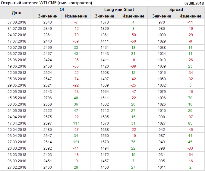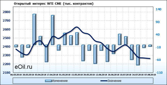 Отчет по открытому интересу. WTI. Биржа CME Group на 11.08.2018