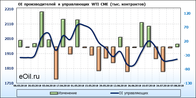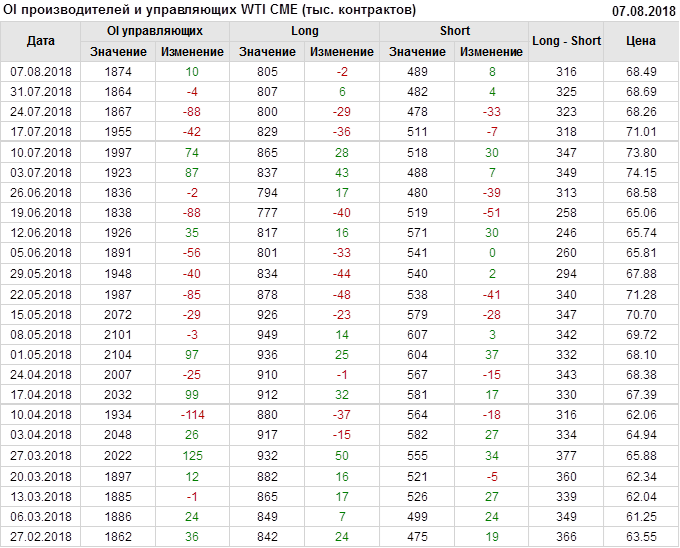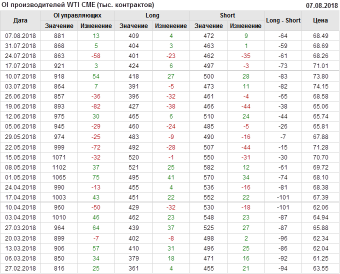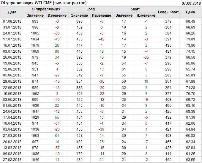Отчет по открытому интересу. WTI+Brent. CME Group и ICE на 11.08.2018