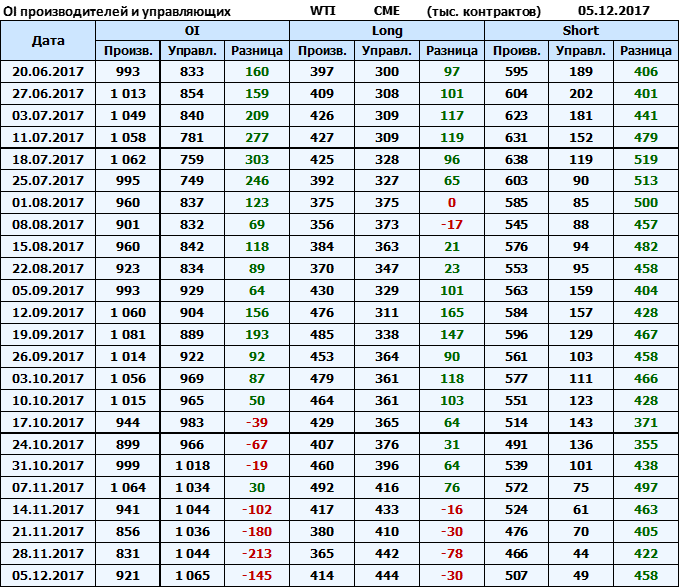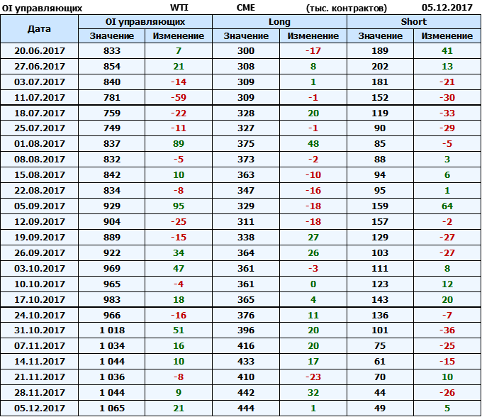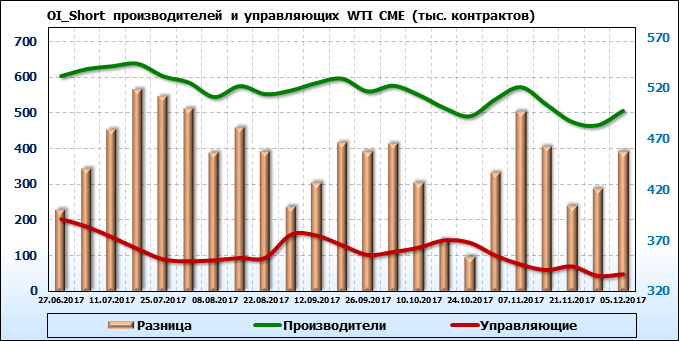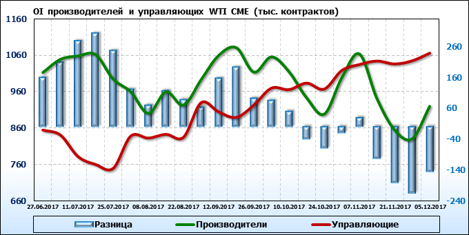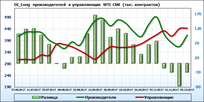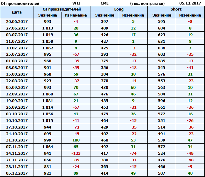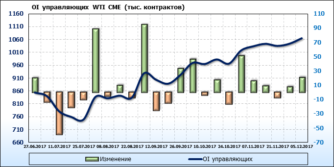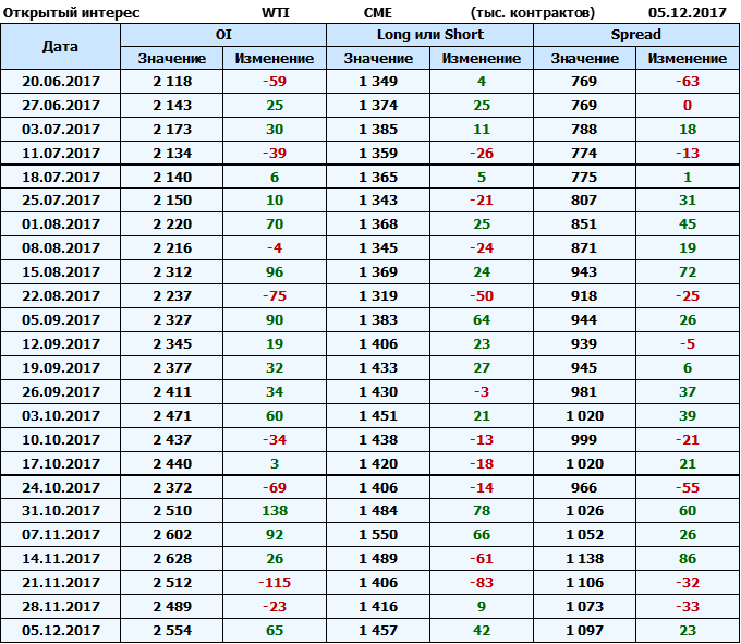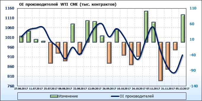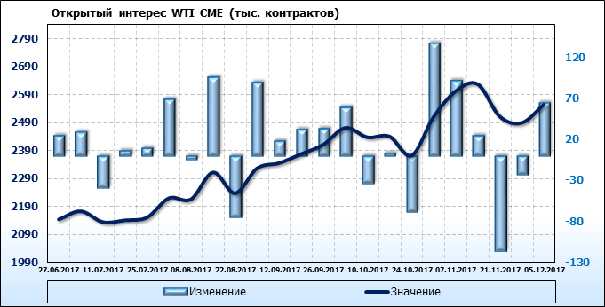 Отчет по открытому интересу. WTI. Биржа CME Group на 11.12.2017.