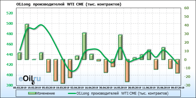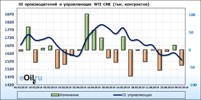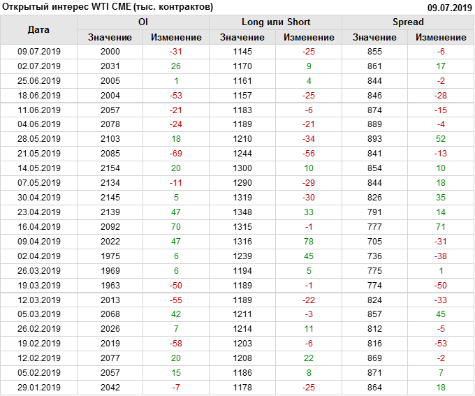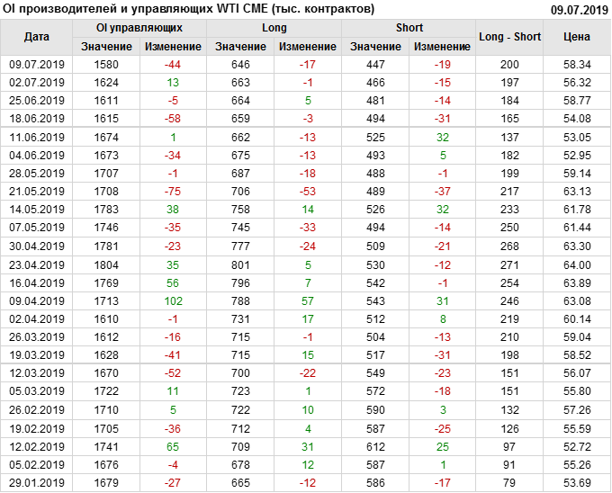 Отчет по открытому интересу. WTI. Биржа CME Group на 13.07.2019