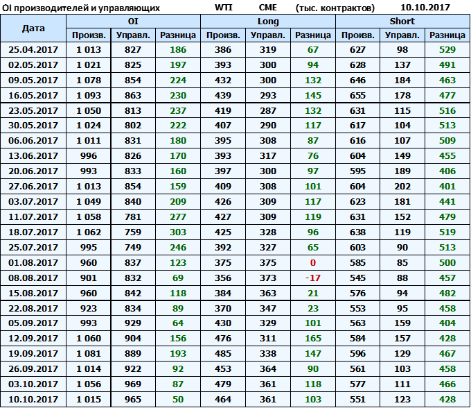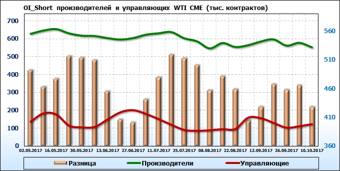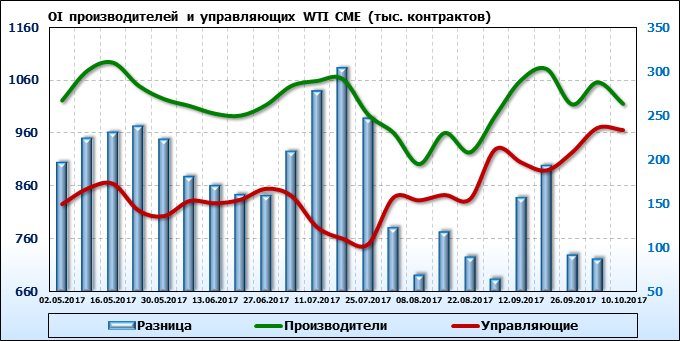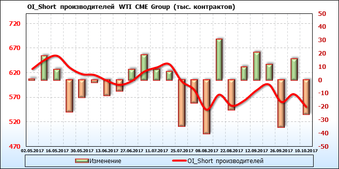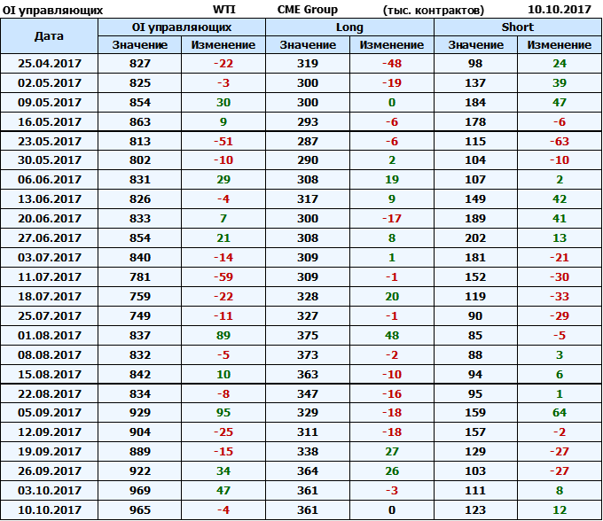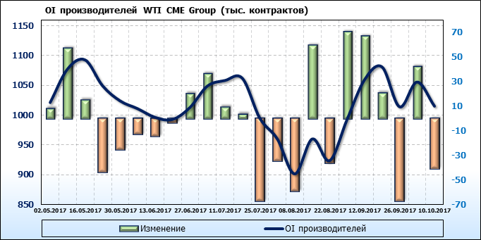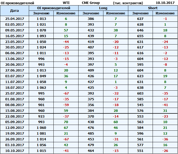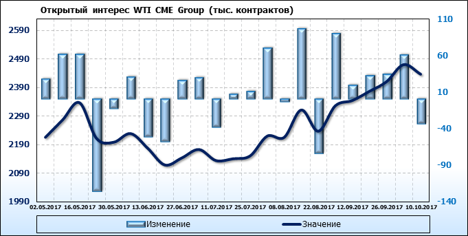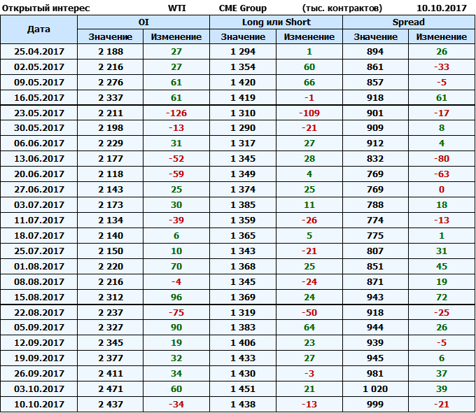Отчет по открытому интересу. WTI. Биржа CME Group на 13.10.2017.