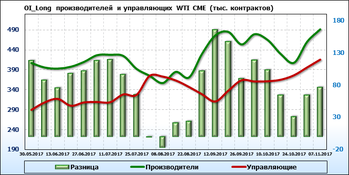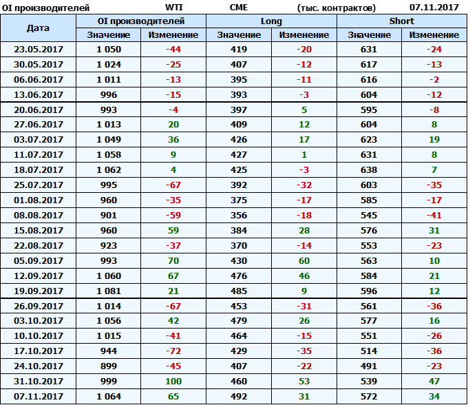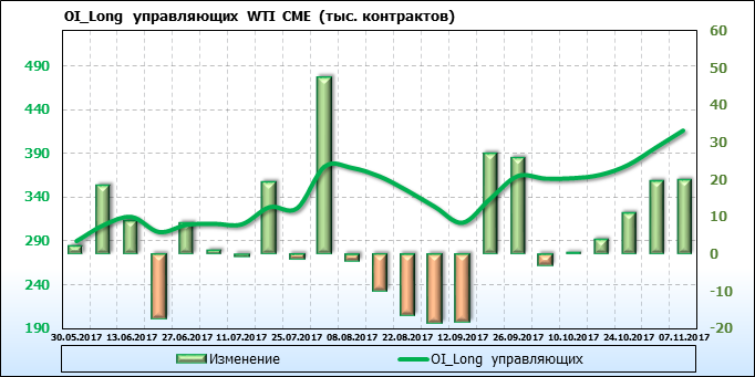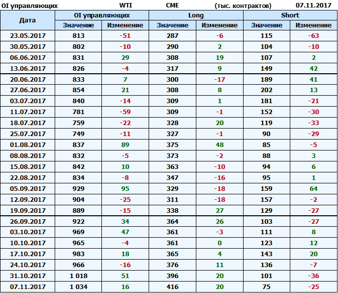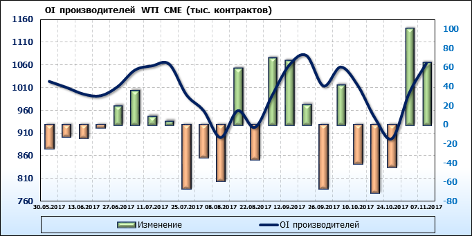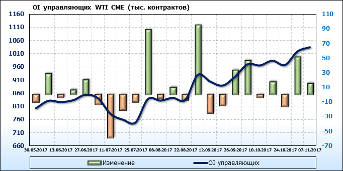 Отчет по открытому интересу. WTI. Биржа CME Group на 14.11.2017.