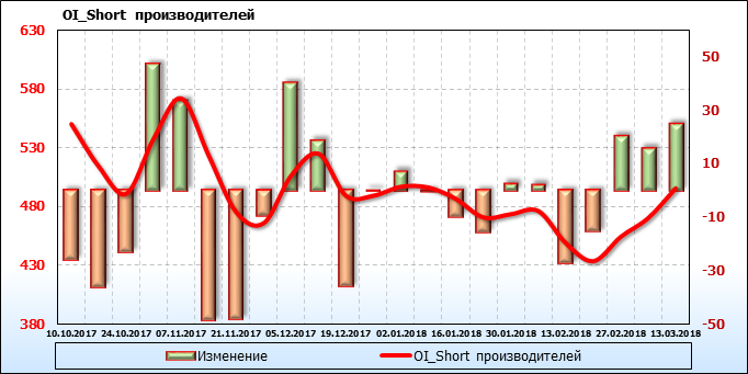 Открытый интерес производителей вырос на 57 тысяч контрактов. Объем контрактов, направленных как правило на хеджирование, составляет 906193 штук. Деньги производителей в течение прошлой недели приходили на рынок поддерживая тенденцию.