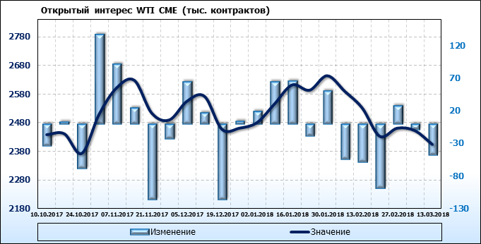 Отчет по открытому интересу. WTI. Биржа CME Group на 16.03.2018