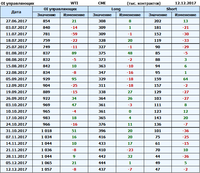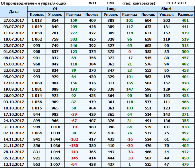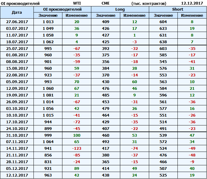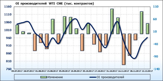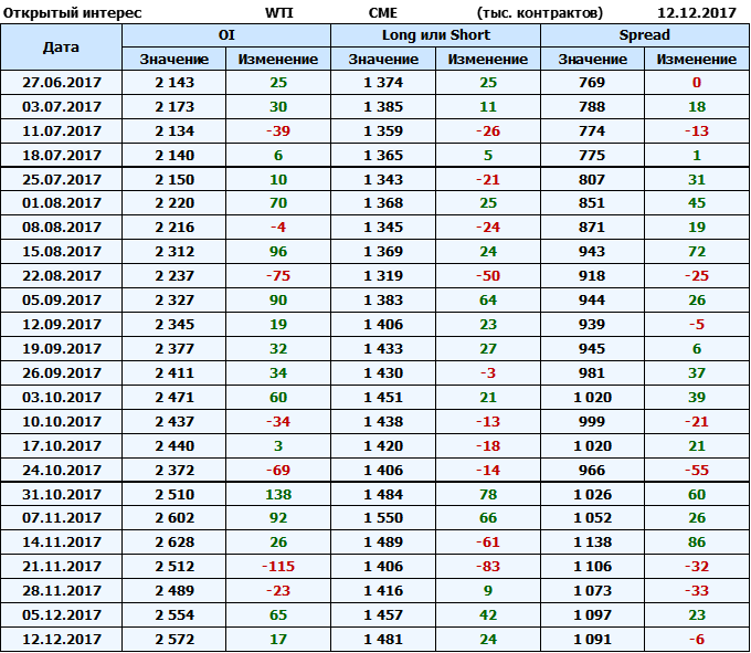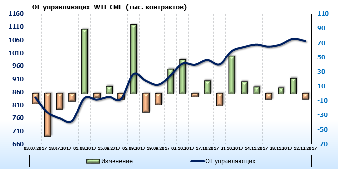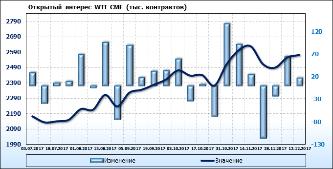 Отчет по открытому интересу. WTI. Биржа CME Group на 16.12.2017.