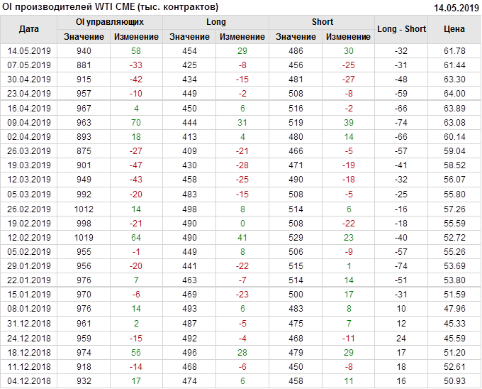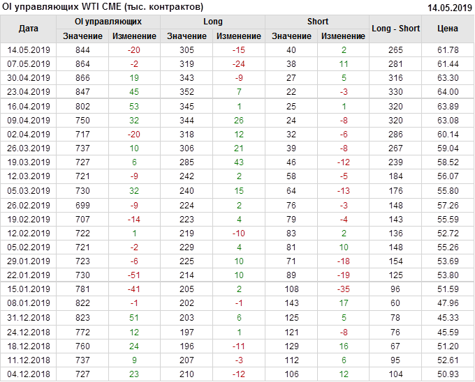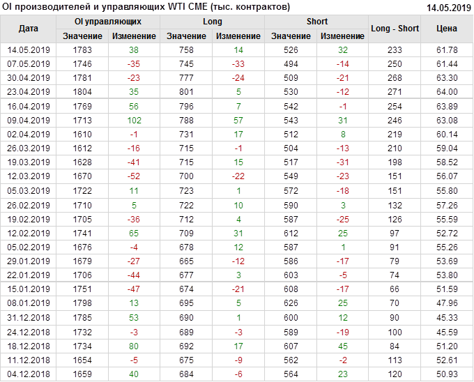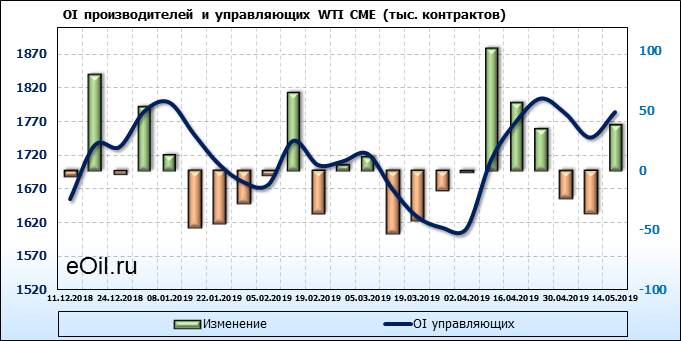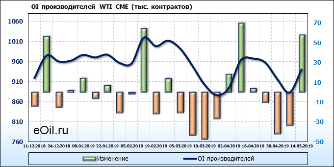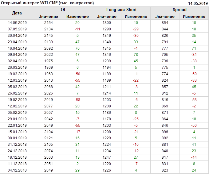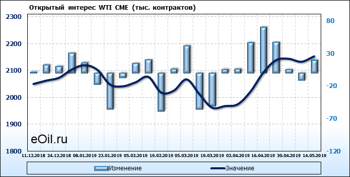 Отчет по открытому интересу. WTI. Биржа CME Group на 18.05.2019