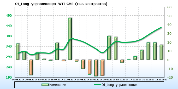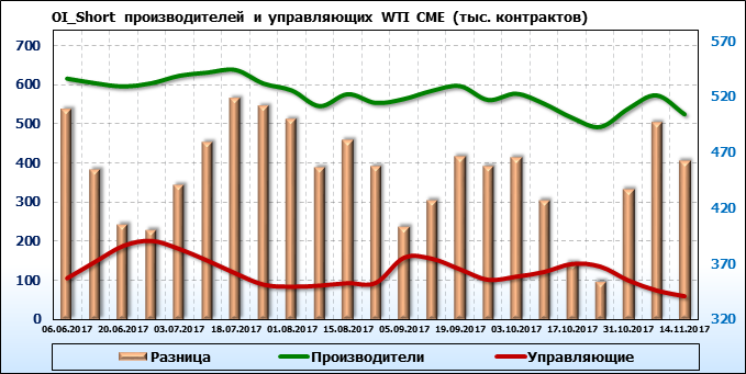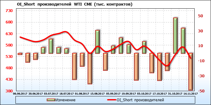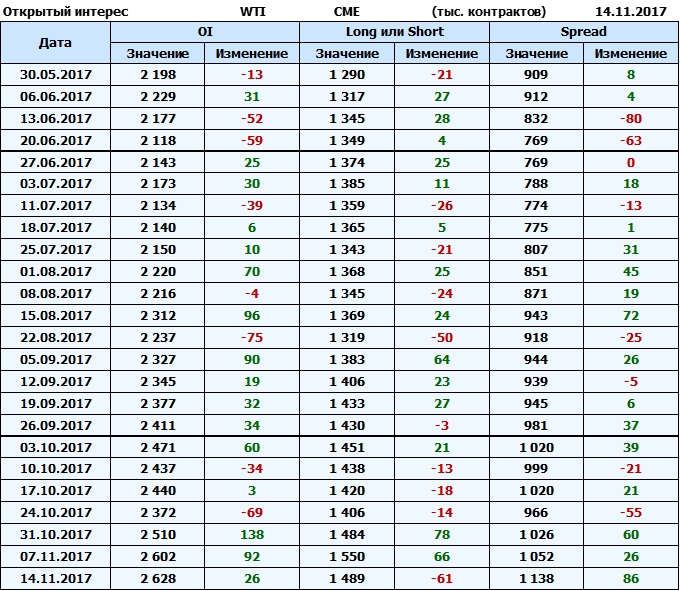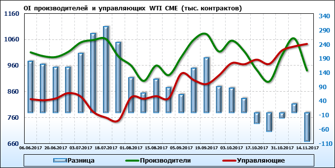 Отчет по открытому интересу. WTI. Биржа CME Group на 18.11.2017.
