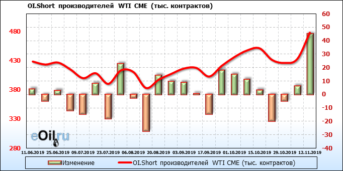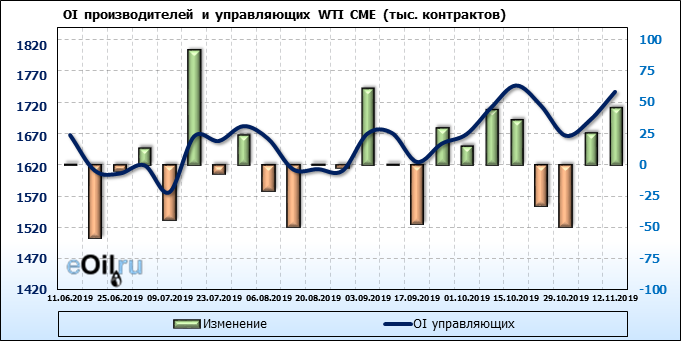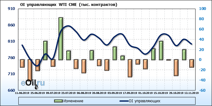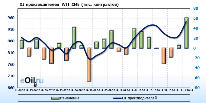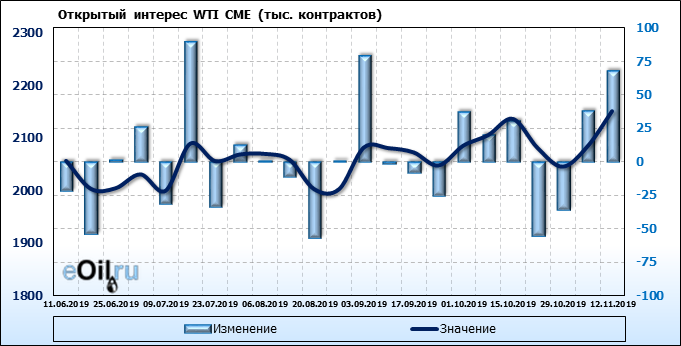 Отчет по открытому интересу. WTI. Биржа CME Group на 18.11.2019