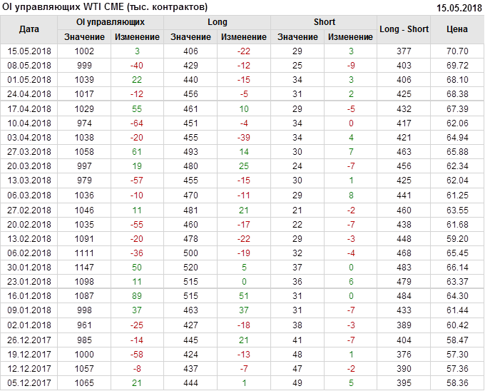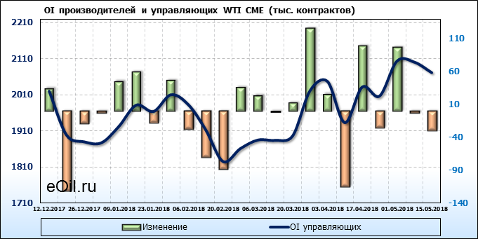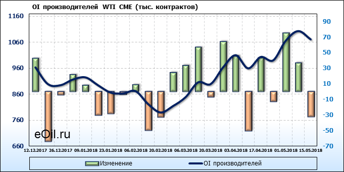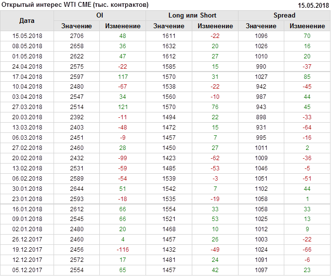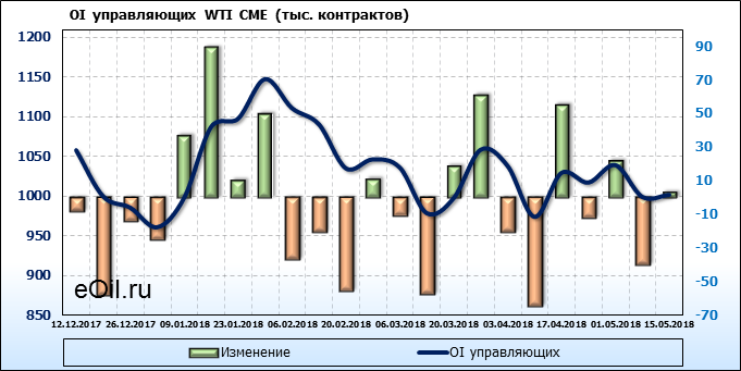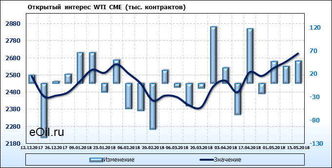 Отчет по открытому интересу. WTI. Биржа CME Group на 19.05.2018
