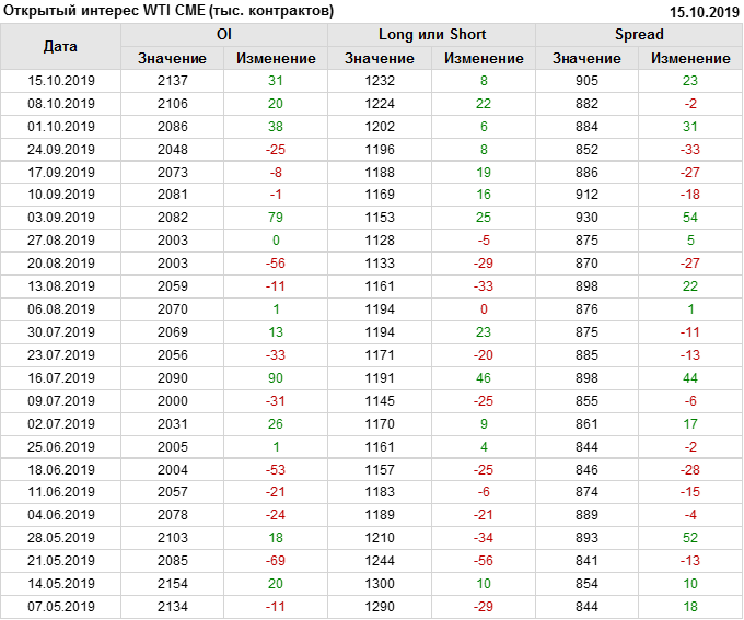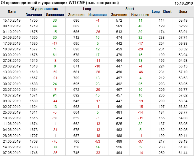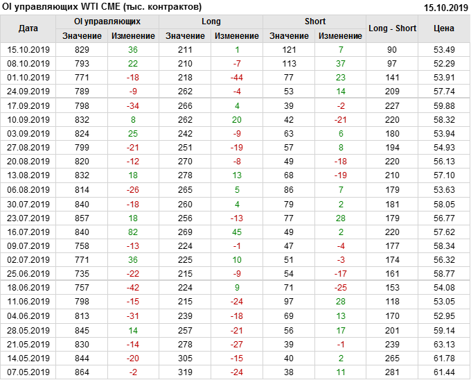 Отчет по открытому интересу. WTI. Биржа CME Group на 19.10.2019